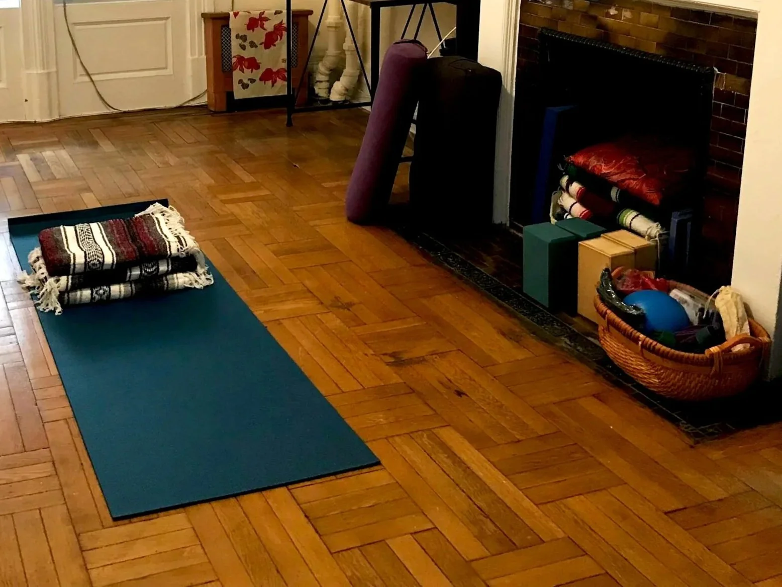 Props used (provided by studio LB in person): yoga mat, blocks, belt, and blankets. Blocks or balls for Pilates.